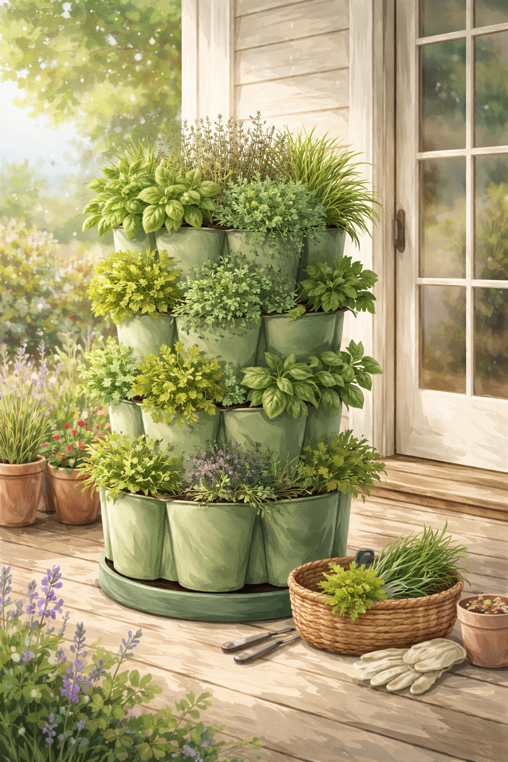 A few years ago, my husband and sons surprised me with two GreenStalk vertical planters for Mother’s Day. At first, I used them mostly for strawberries and flowers. I loved the flowers — they brought color and life to our porch — but the strawberries never gave me the results I hoped for. This spring, I’m transplanting the strawberries into a raised bed and giving my GreenStalks a new purpose: culinary herbs right outside my kitchen door.